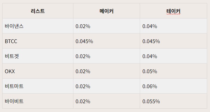 | 모든 페어의 선물 트레이딩 | 0% | 0.01% | 아주 파격적인 수수료율 |